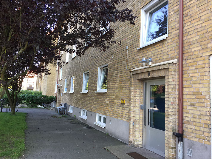Fastigheten är uppförd 1952 och förvärvades av oss 1975. Den har en uthyrd yta av 1 103 kvm med 15 lägenheter och två lokaler, en tandläkarpraktik och en jourlivsbutik. Fastigheten är centralt belägen i Trelleborg. Trelleborgs lasarett ligger inom närområdet och det är inte långt till skola och dagis. Fastigheten ligger intill en park.