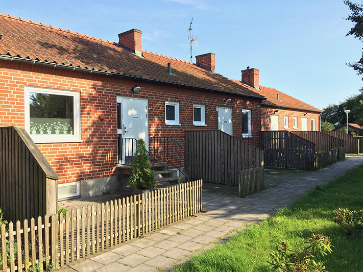Fastigheten är uppförd 1963 och förvärvades 2009 av oss från Trelleborgs Hem. Den uthyrda ytan är 315 kvm med 6 marklägenheter samt en lokal. Varje lägenhet har egen uteplats. I Alstad finns gatukök, bensinstation/bilverkstad samt bussförbindelser till Trelleborg, Malmö, Lund och Anderslöv.