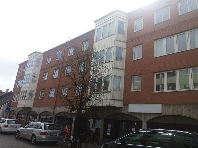 Fastigheten är uppförd 1985 och förvärvades av oss 2016. Den har en uthyrd yta av 1 848 kvm med 20 lägenheter och två butikslokaler. Fastigheten ligger intill gågatan med all tänkbar service – affärer, restauranger, banker, matbutiker, biograf etc. På baksidan finns parkeringsplatser.
